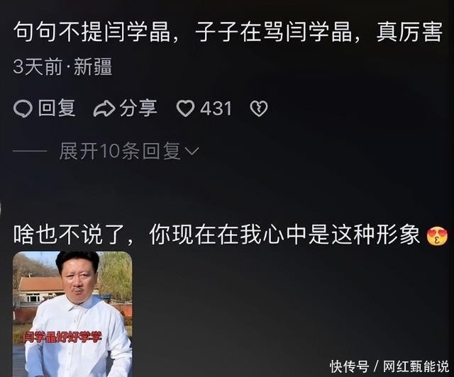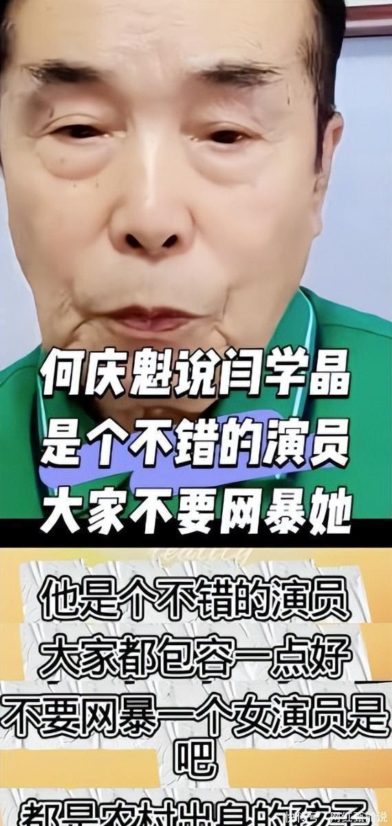 可是没有想到,这样的处理方式会引发更大的舆论风暴。 进而发展成了,谁给帮她说话,谁就会被吐槽。 比如老编剧何庆魁,就因为劝网友们对闫学晶包容一点,劝网友们对闫学晶大度,还为闫学晶的哭穷开脱,被网友们吐槽糊涂。 私生活被扒,网友吐槽他连自己的儿子何树成都管不好,有什么资格管网友?