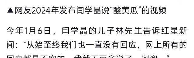 事情发展到这个地步,闫学晶的儿子再也坐不住了。 此前网上流传出不少视频,称闫学晶回应时怒怼网友是“酸黄瓜”,因此陷入又一轮争议。 眼见母亲深陷舆论风波,作为儿子的林傲霏通过媒体记者发声,称网上所有的回应均不真实。 至于闫学晶“哭穷”等言论,则表示不会再多说。